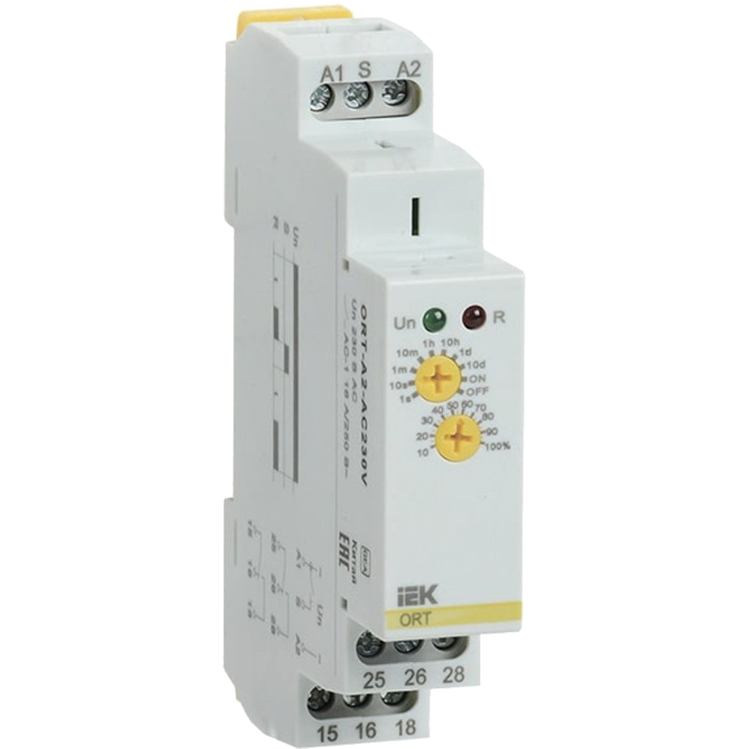 Реле задержки включения ORT-A2-AC230V с 2-мя перекидными контактами и питанием 230В AC предназначено для коммутации электрических цепей с определенными, предварительно установленными выдержками времени, в однофазных электрических сетях переменного тока напряжением до 230 В и частотой 50 Гц.